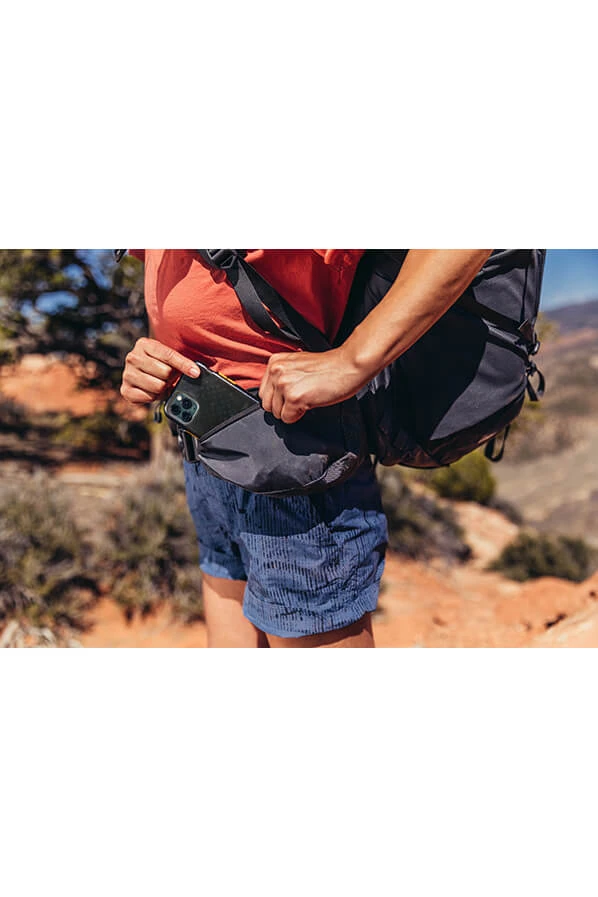 - Store lommer pĂĄ hoftebeltet for mobiltelefon og lignende